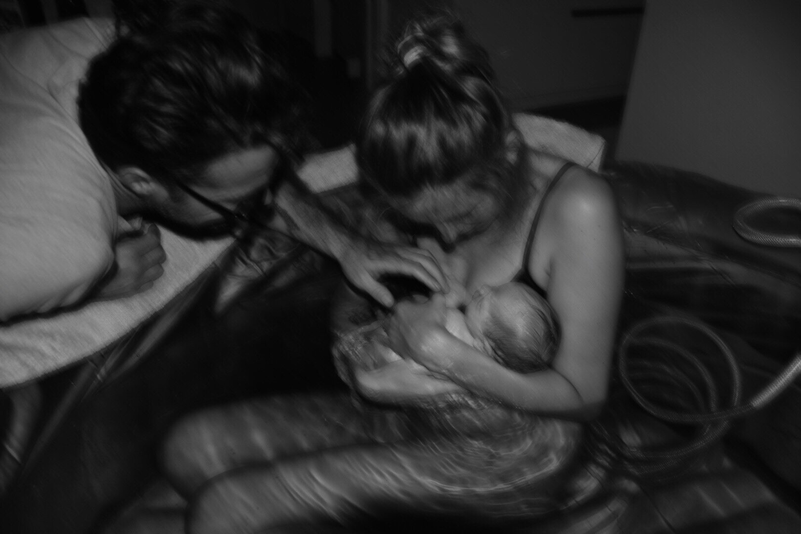 En onze zoon? Die had volgens mij niet door dat hij al geboren was. Een klein kreetje. En dan lag hij op mijn borst in het warme water, nog niet beseffend dat hij al uit de buik was 😉