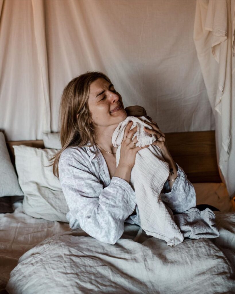 Nog geen vier minuten later komt fotografe Emma Brasser binnen. Ze schiet onze eerste minuten vol liefde. Ik krijg hier niks van mee. En dan, een minuut of 10 later, staat daar Daniela aan het bad. Een grote lach op haar gezicht. Voor de derde keer onderdeel van mijn geboorteteam, maar dit keer op afstand. Wat ben ik trots.’