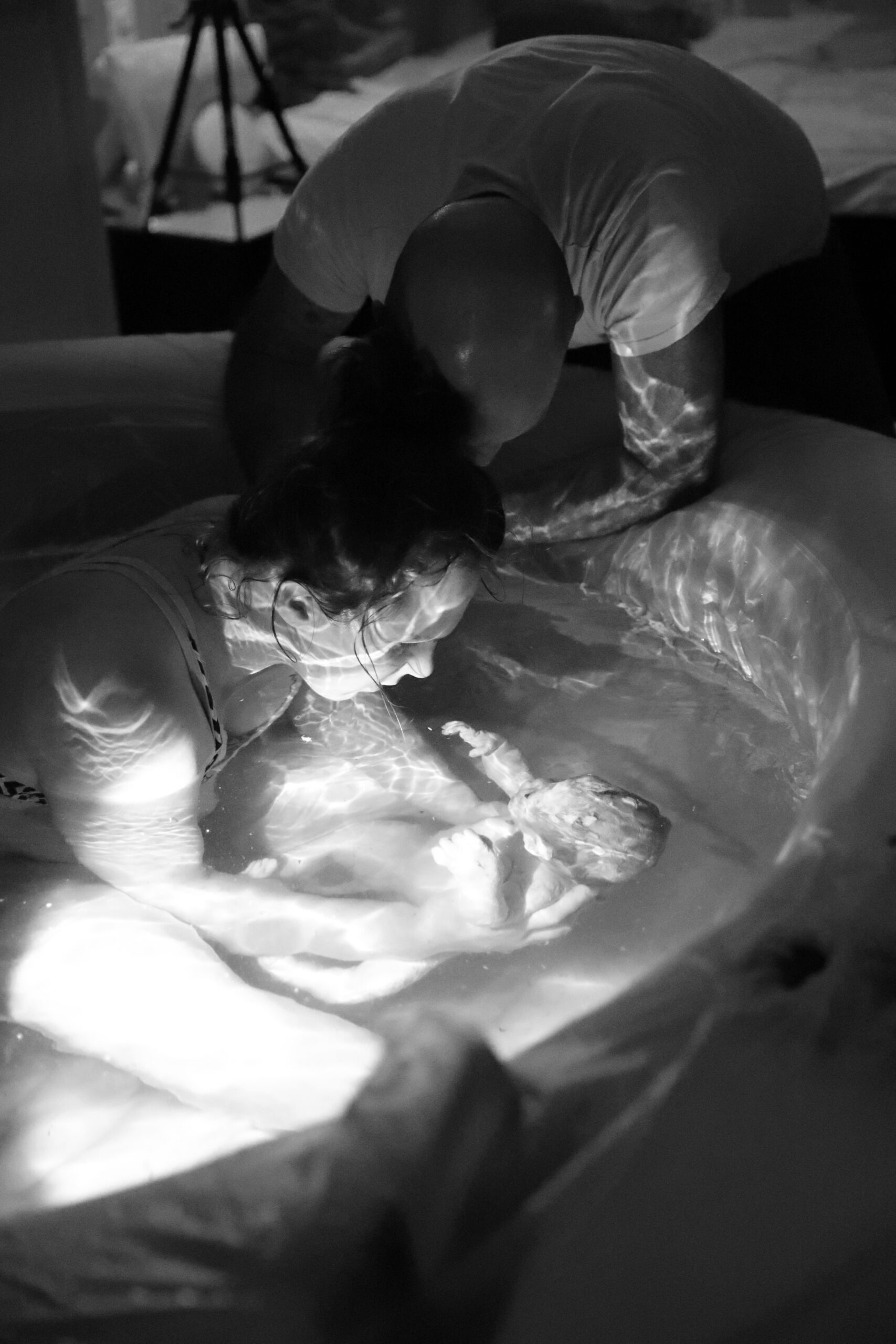 Sommige weeën doen pijn, sommige zijn orgastisch. Sommige weeën vang ik zo op dat mijn man denkt dat ik er geen heb, bij de meesten hang ik aan zijn armen voor tegenkracht en laat ik mijn stem gaan. Ik voel mijn dochter de hele bevalling bewegen, prachtig vind ik dat.